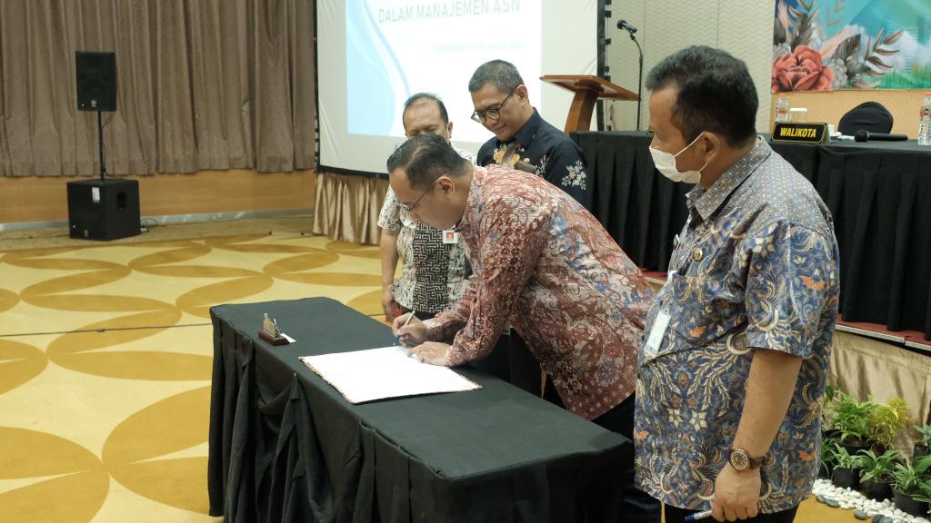 KOMITMEN TERAPKAN : Pemkot Magelang komitmen akan menerapkan sistem merit usai ditandatanganinya komitmen (Dok Prokompim Kota Magelang)