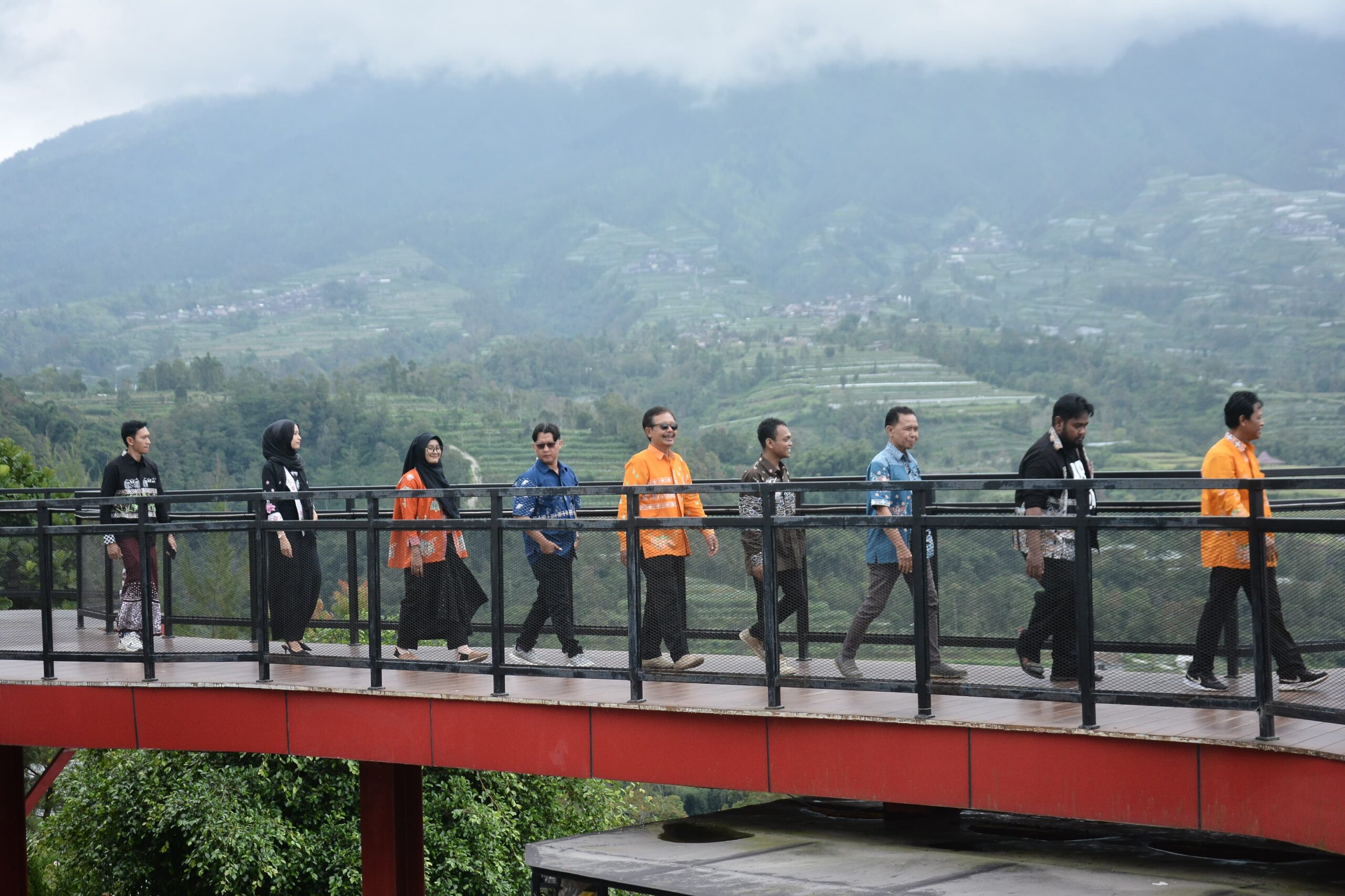 BAK MODEL : Anggota PWI Kabupaten Magelang asyik tampil lenggak lenggok bak model di Ketep Pass Sawangan (Dok Istimewa)