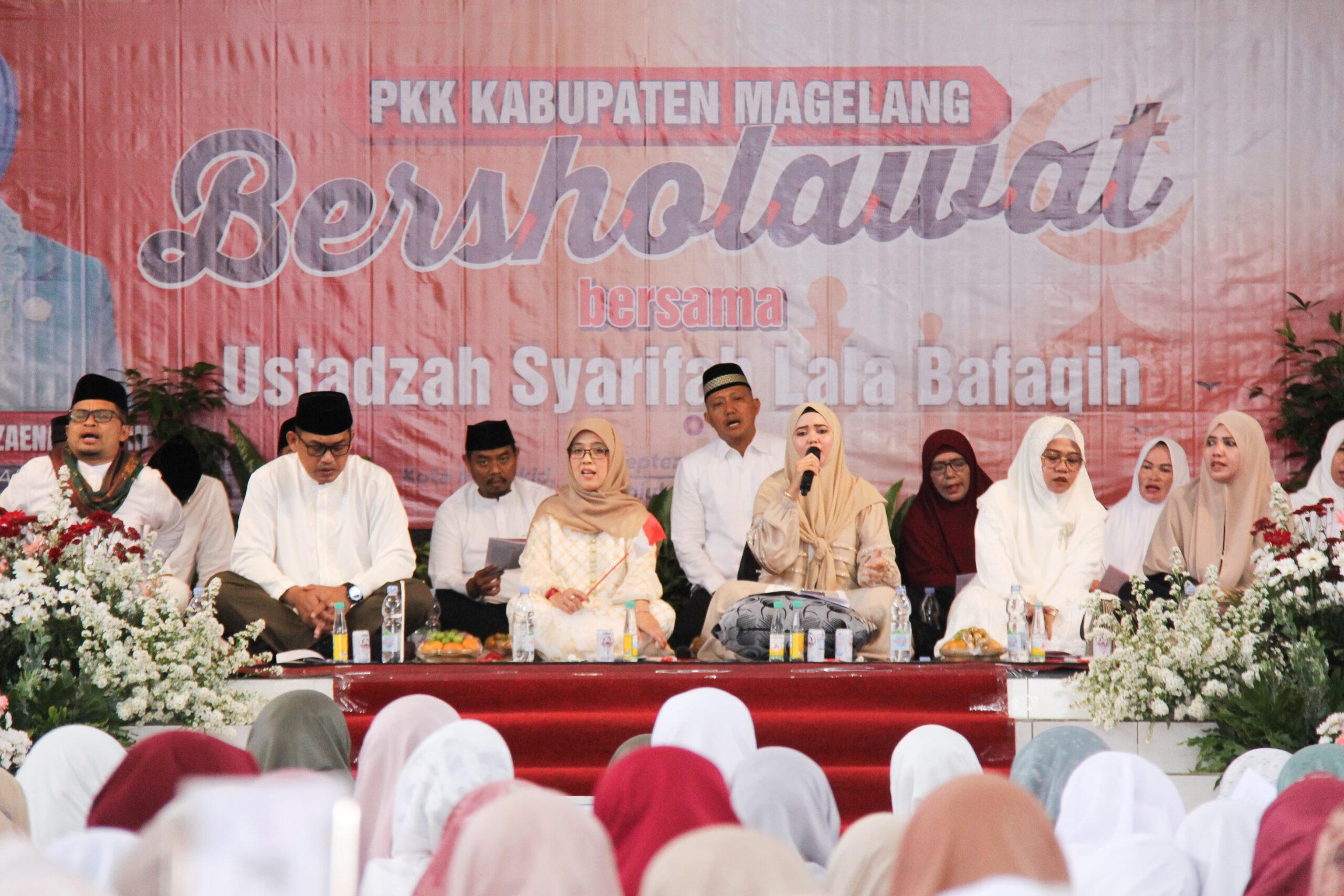 PKK BERSHOLAWAT : Kegiatan PKK Bersholawat memperingati Maulid Nabi Tingkat Kabupaten Magelang Tahun 2023 dihadiri Ketua Tim Penggerak PKK Kabupaten Magelang, Christanti Handayani Zaenal Arifin bersama jajaran Forkompimda (Dok Prokompim Kab Magelang)
