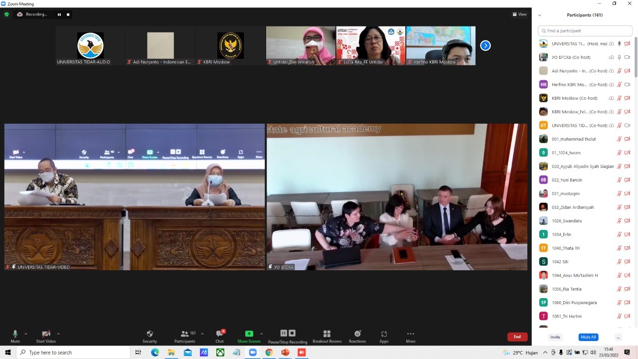 Hal ini disampaikan Dekan Fakultas Pertanian Universitas Tidar, Ir. Usman Siswanto, M.Sc., Ph.D, Rabu (23/03/2022) pada Kuliah Umum Suistanable Agriculture in Indonesia & Belarus, Kerjasama antara Untidar Belarusia State Agriculture Academy (BSAA).