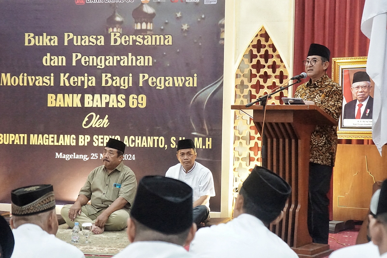 BERI ARAHAN : Pj Bupati Magelang Sepyo Achanto memberikan arahan pada acara buka bersama karyawan PT BPR Bank Bapas 69 Magelang (Dok Prokompim Kab Magelang)