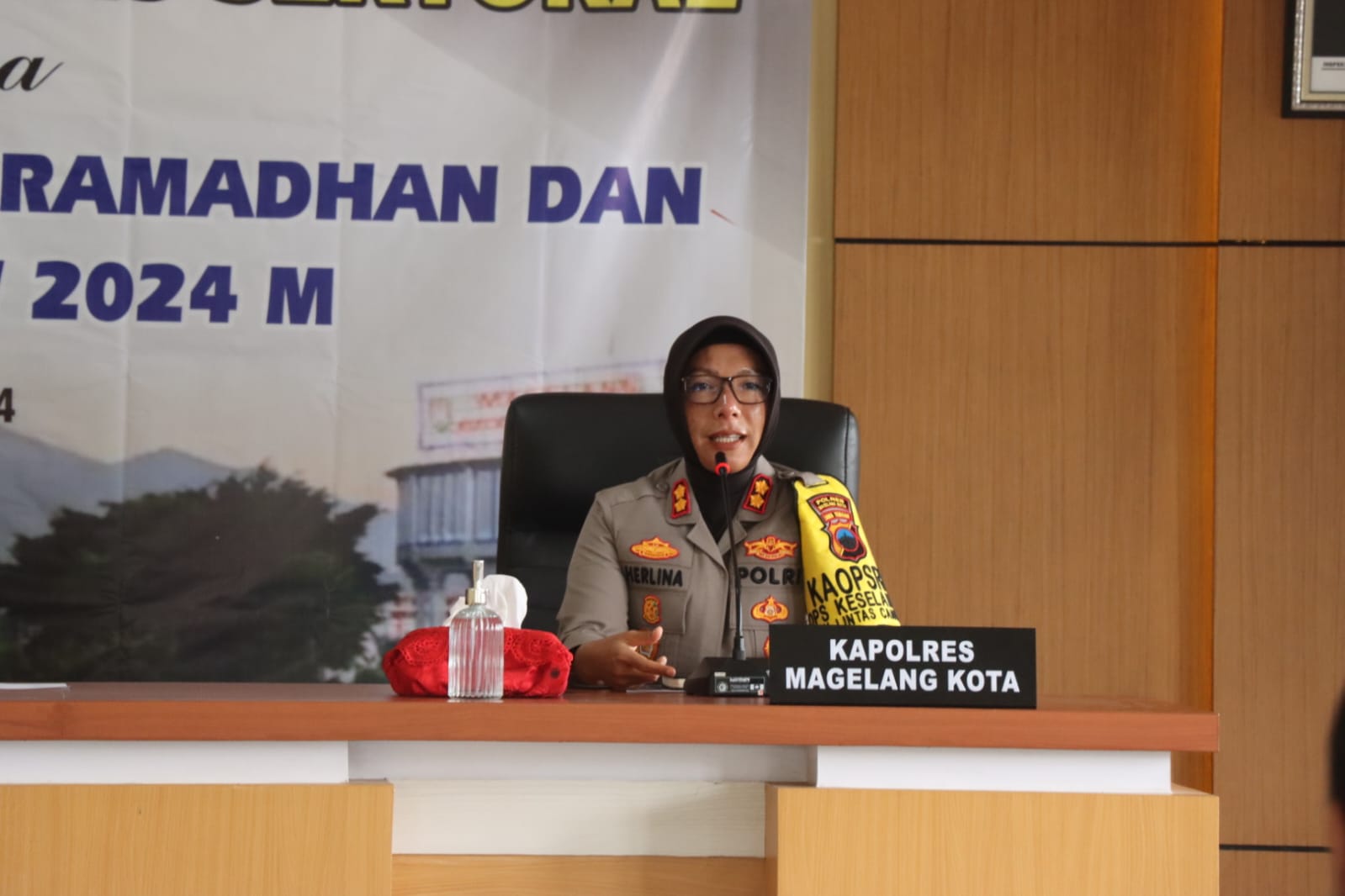 BERI KETERANGAN : Kapolres Magelang Kota, AKBP Herlina memberikan keterangan terhadap maraknya aksi perang sarung di masyarakat (Dok Humas Polres Magelang Kota)