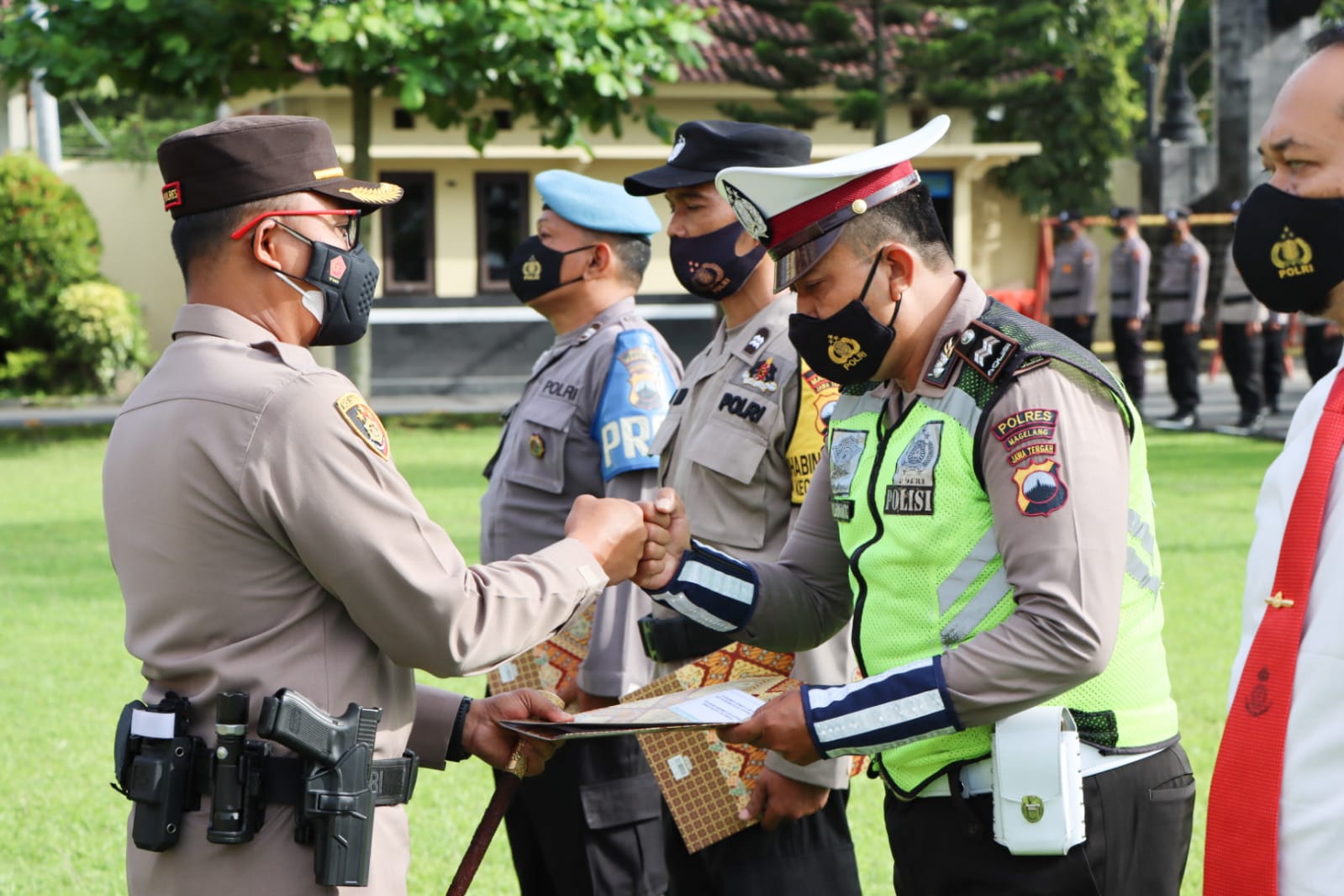 BERI PENGHARGAAN : Kapolres Magelang AKBP M Sajarod Zakun memberikan penghargaan kepada personel yang berprestasi (Dok Humas Polres Magelang)
