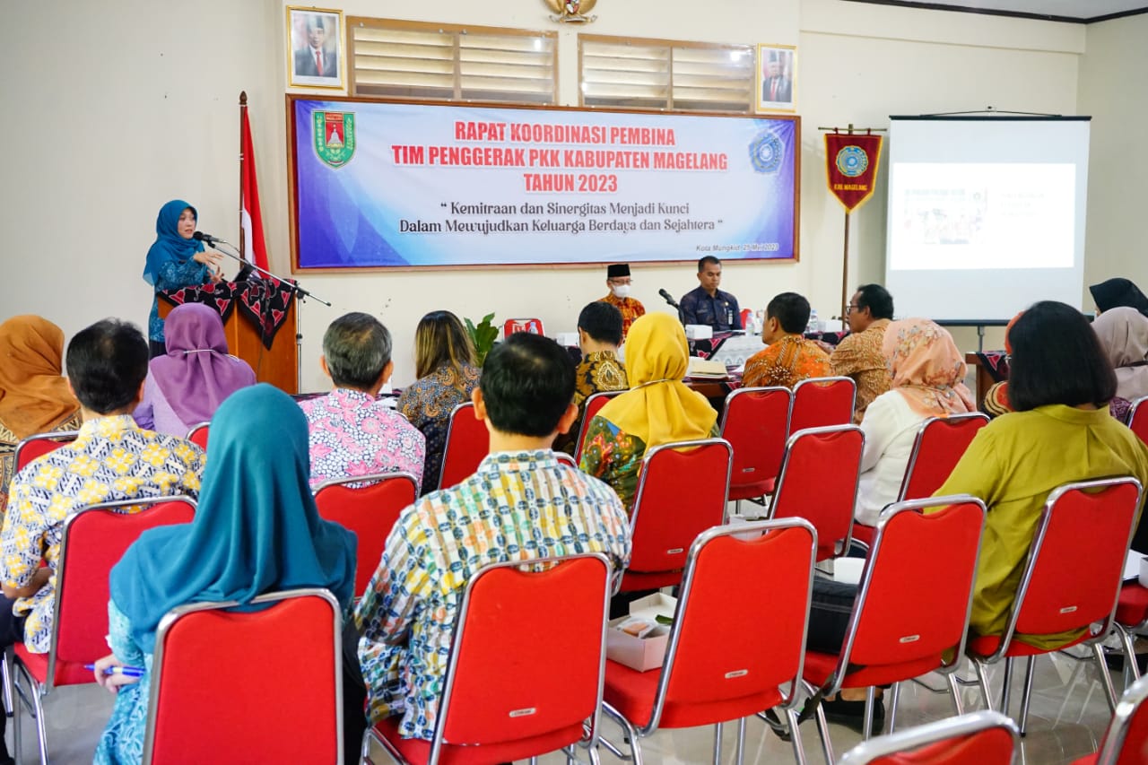 BUKA RAKOR : Sekretaris Daerah Kabupaten Magelang, Adi Waryanto dan Ketua Tim Penggerak PKK Kabupaten Magelang, Christanti Zaenal Arifin membuka Rapat Koordinasi Pembina Tim Penggerak PKK Kabupaten Magelang Tahun 2023 (Dok Prokompim Kab Magelang)