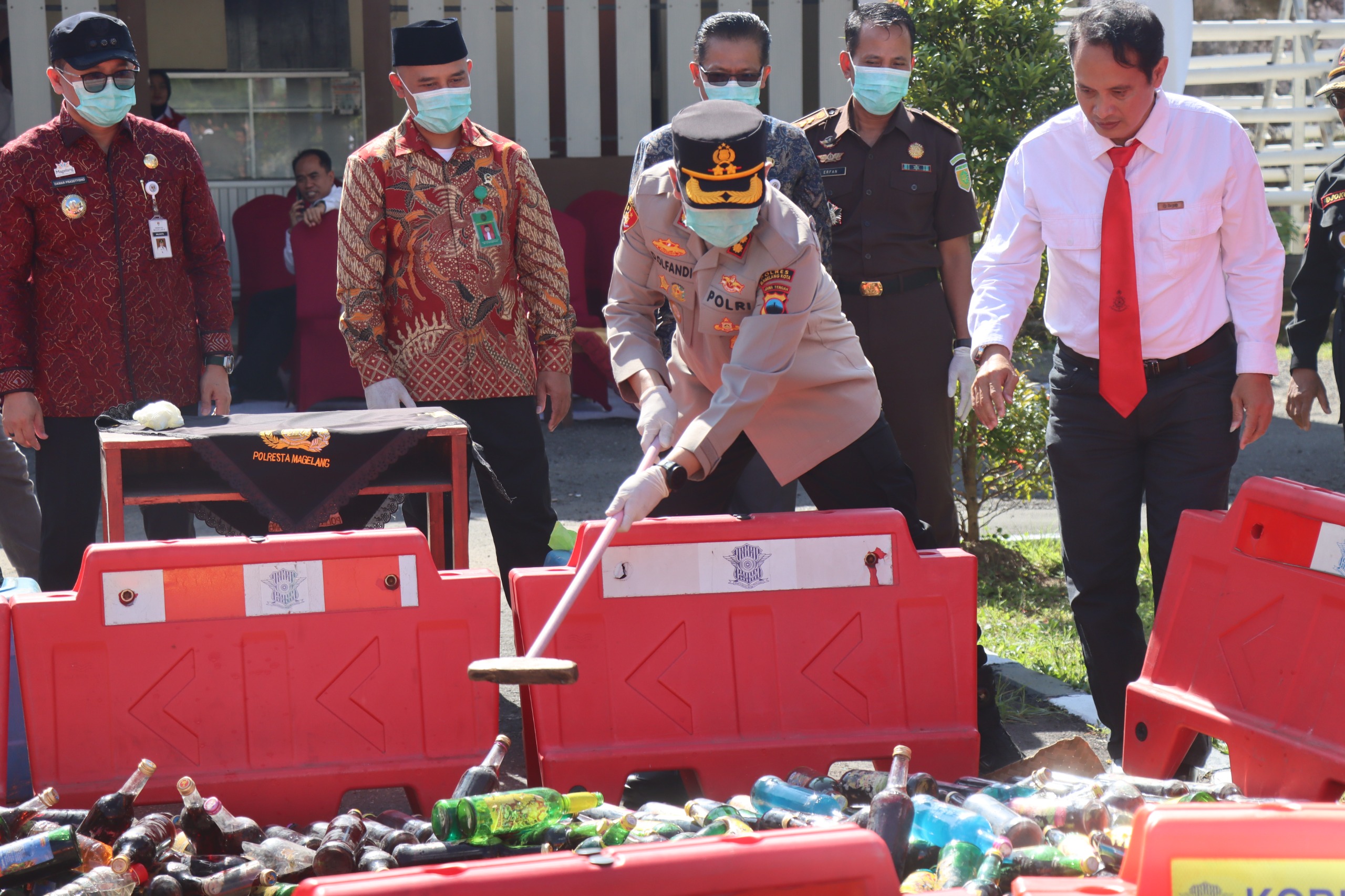 Ratusan Botol Miras Dimusnahkan Polres Magelang Kota