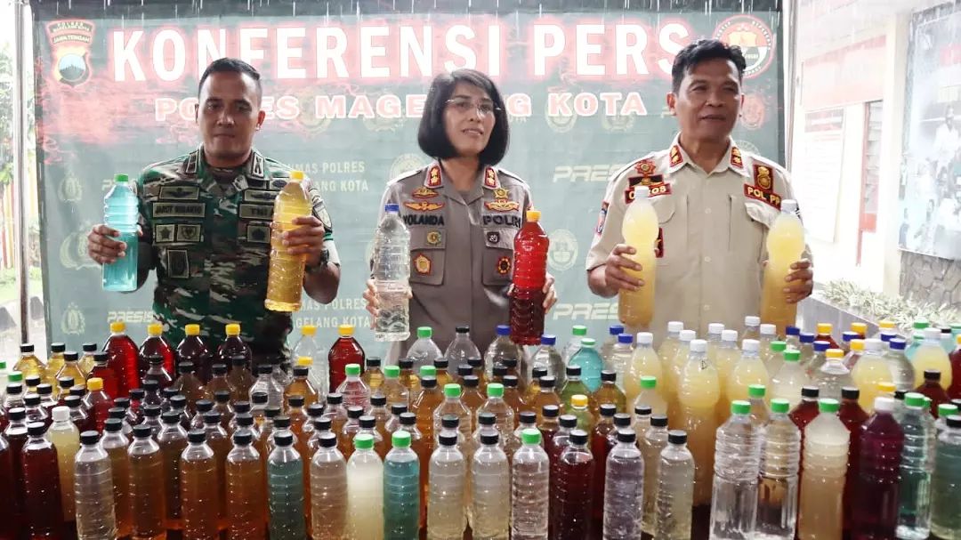 Kapolres Magelang Kota AKBP Yolanda Evalyn Sebayang Yolanda saat konferensi pers di Mako Polsek Magelang Selatan, Jum’at (24/3/2023), mengatakan, pihaknya sudah memperoleh informasi perdagangan miras itu pada saat ada event Pawai Kebangsaan pada Selasa (21/3/2023) lalu.