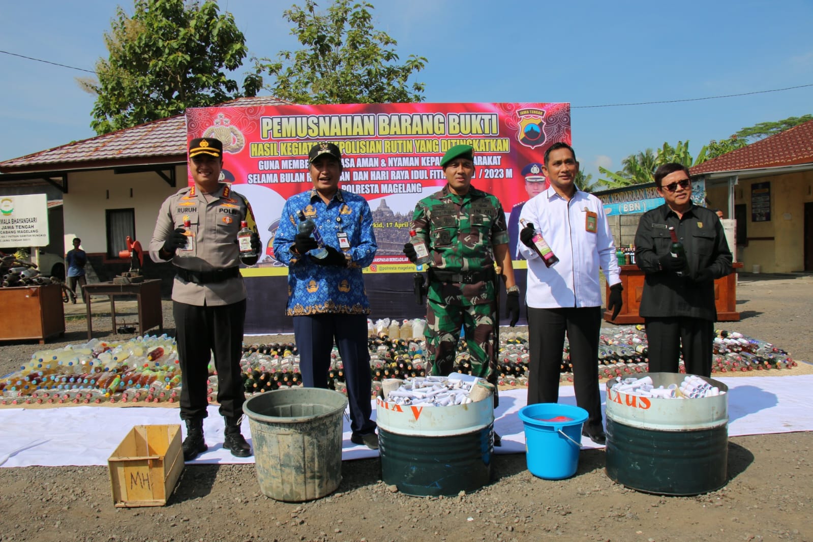 Sementara Bupati Magelang Zaenal Arifin, mengapresiasi jajaran Polresta Magelang yang telah menunjukkan hasil kerjanya, dengan memusnahkan ribuan barang bukti berupa minuman keras (miras), petasan, dan knalpot brong. Menurutnya, ini untuk menjaga kondusifitas di wilayah Kabupaten Magelang.