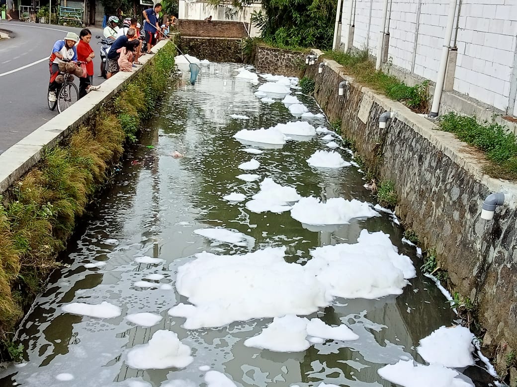 Agus menhgaku bahwa limbah berbentuk air sabun tersebut mencemari aliran kali sejak sore hari. Imbasnya, kata Agus, air di Kali Gandekan memutih dan berbuih.