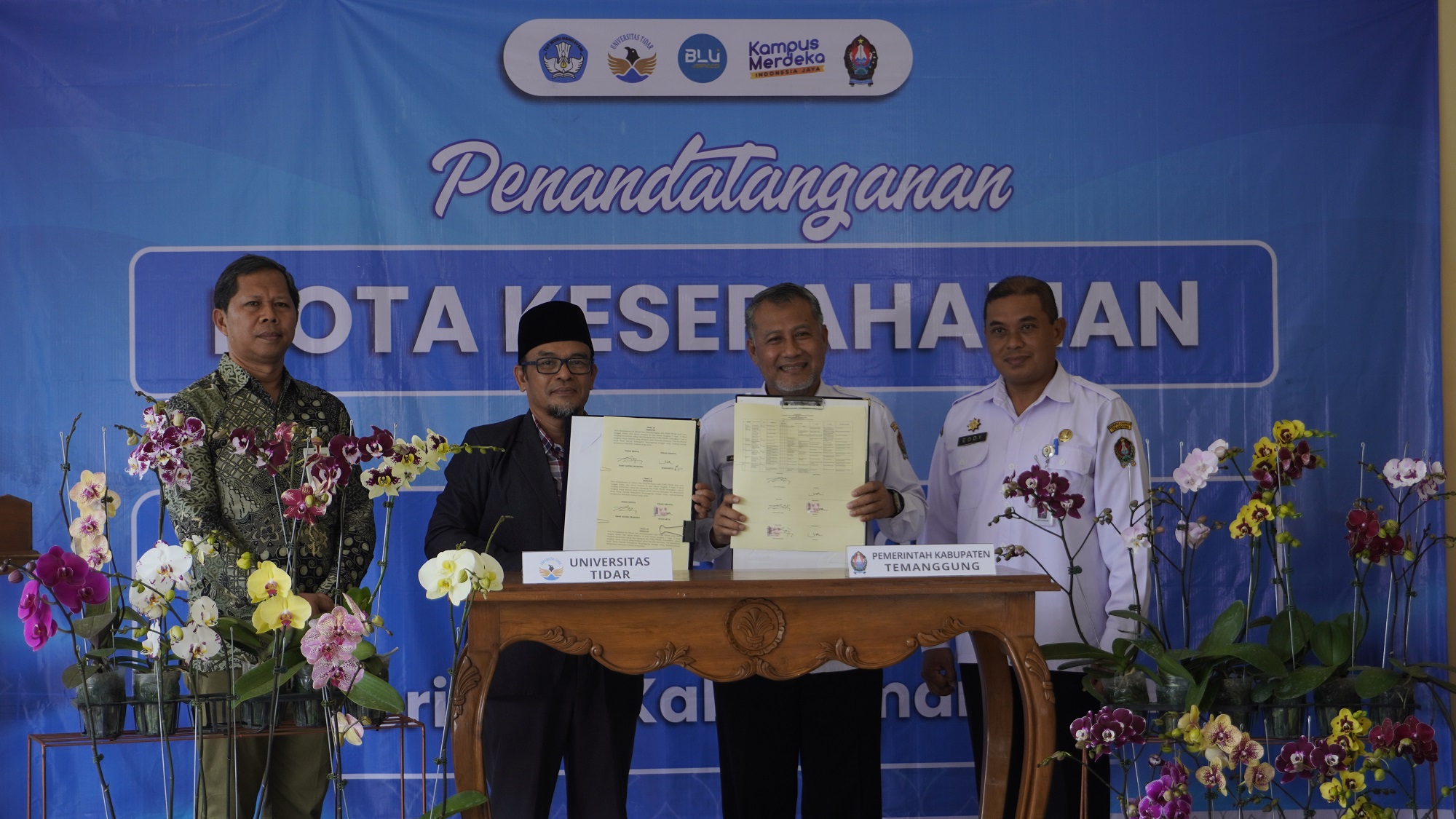 Nota kesepahaman ditandatangi oleh Rektor Universitas Tidar, Prof. Dr. Sugiyarto, dan Pj. Bupati Temanggung , Drs. Hary Agung Prabowo.