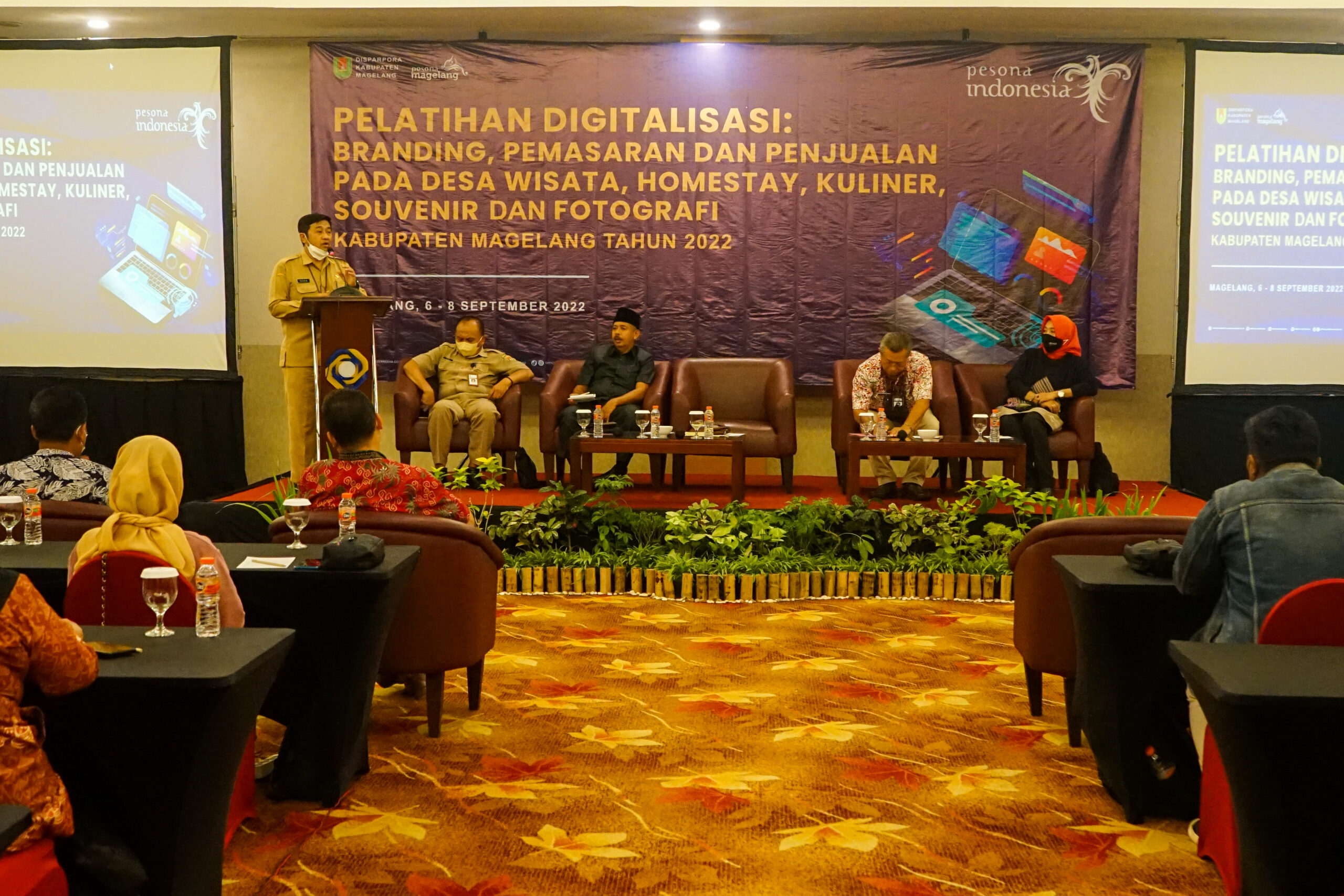 Hal ini disampaikan Bupati Magelang Zaenal Arifin yang diwakili Kepala Dinas Pariwisata Kepemudaan dan Olahraga (Disparpora) Kabupaten Magelang Achmad Husein, saat membuka Pelatihan Digitalisasi Branding Pemasaran dan Penjualan Pada Desa Wisata, Homestay, Kuliner, Souvenir dan Fotografi Tahun 2022, di Ruang Cemara, Hotel Artos Magelang, kemarin.