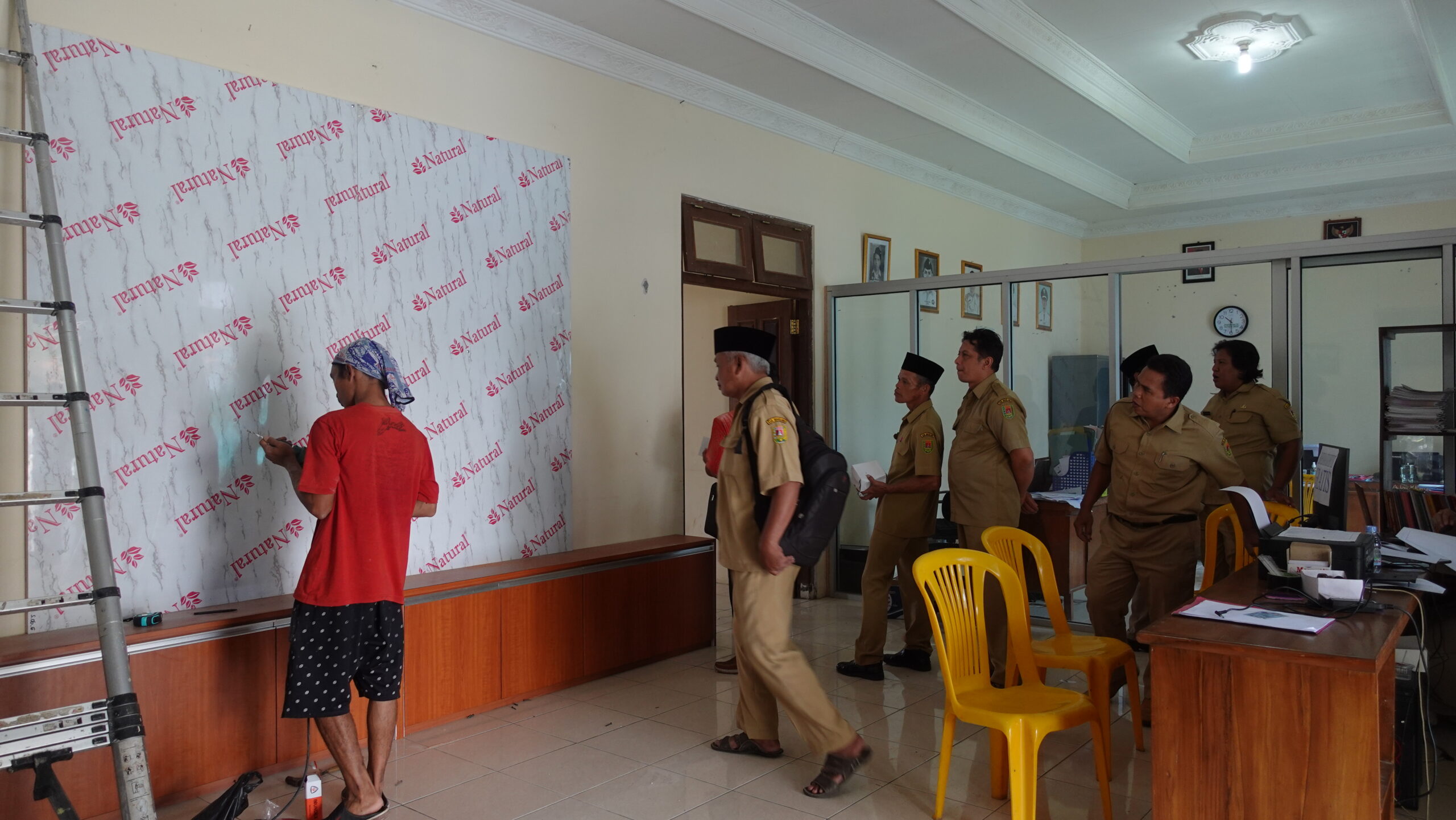 Pengaplikasian backdrop kali ini adalah untuk front office Desa Sumberarum. Kondisi sebelum dan sesudah adanya backdrop pastinya berbeda. Warga atau tamu yang datang akan langsung disambut dengan tulisan