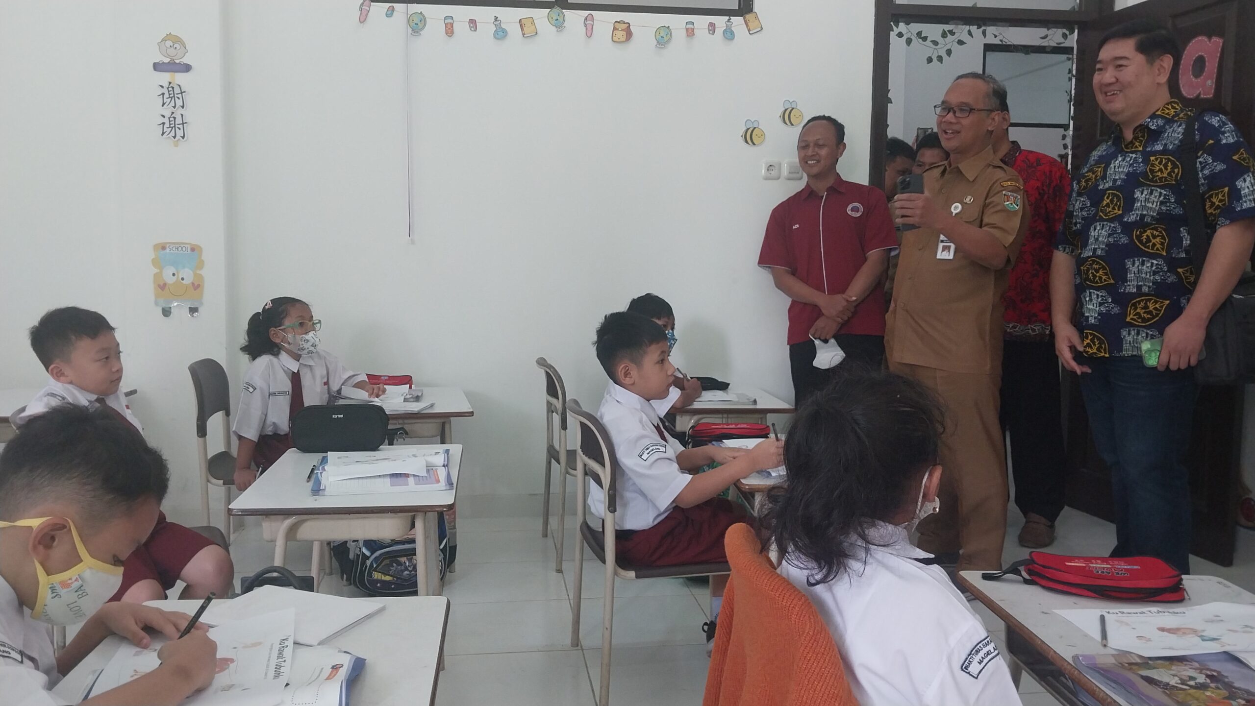SAPA SISWA : Wali Kota Magelang dr. Muchamad Nur Aziz menyapa siswa SD Sekolah Bhakti Tunas Harapan (SBTH) dan berdialog saat mengunjungi kelas (Hadianto/wartamagelang.com)