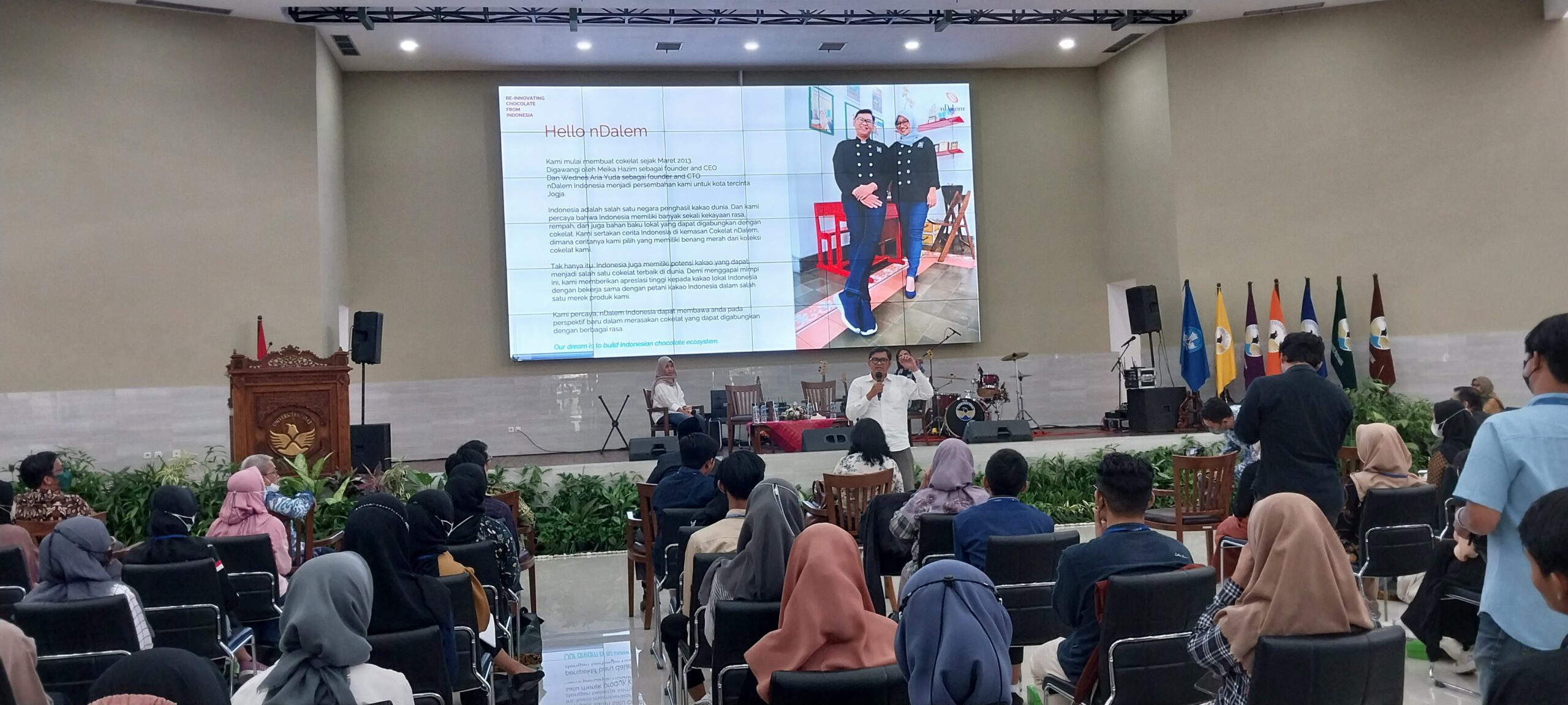 BERBAGI MOTIVASI : Founder Coklat Ndalem Yogyakarta, Wednes Aria Yudha membagikan motivasi dan kiat sukses kepada mahasiswa Untidar (Hadianto/wartamagelang.com)